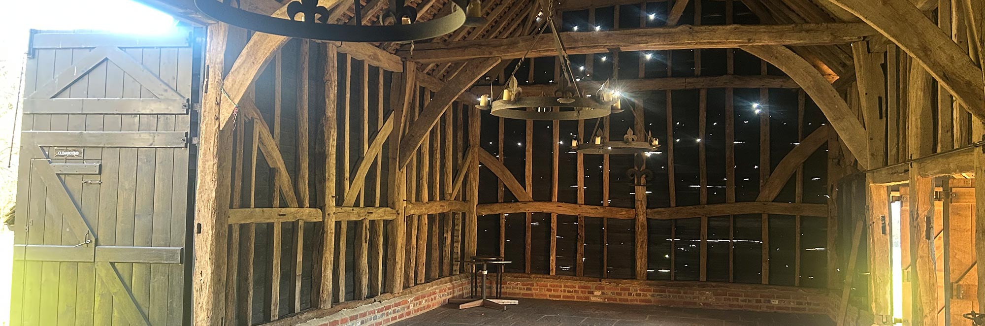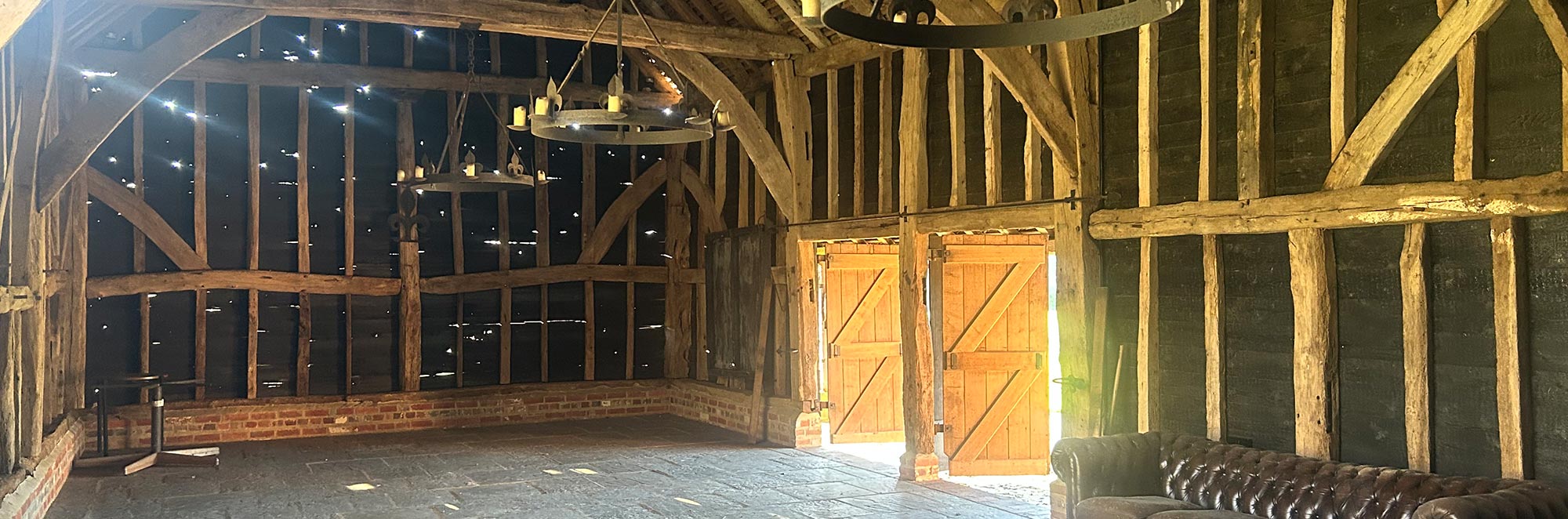 Situated in a peaceful and romantic meadow, the traditional barn gives you a large entertaining space and separate bar area, which opens out onto a patio space perfect for your drink’s reception.