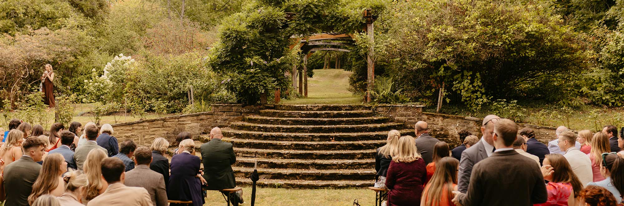 With your guests seated on benches or chairs to witness your outdoor nuptials the garden is a very intimate and romantic setting for your ceremony